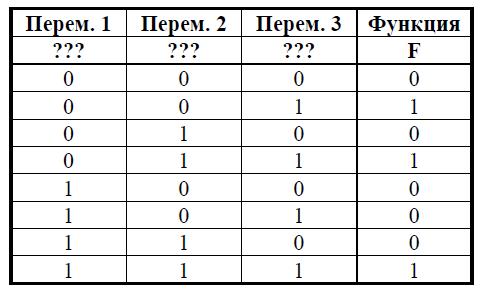 Вопрос № 1. Логическая функция F задаётся выражением (¬z) /\ x \/ x /\ y. Определите, какому столбцу таблицы истинности функции F соответствует каждая из переменных x, y, z.