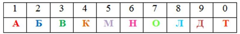 Вопрос № 1. Посмотрите на таблицу и расшифруйте слово: 37861